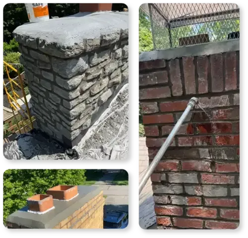 Full restoration services, including tuckpointing and mortar repair, to maintain your chimney’s strength and appearance.